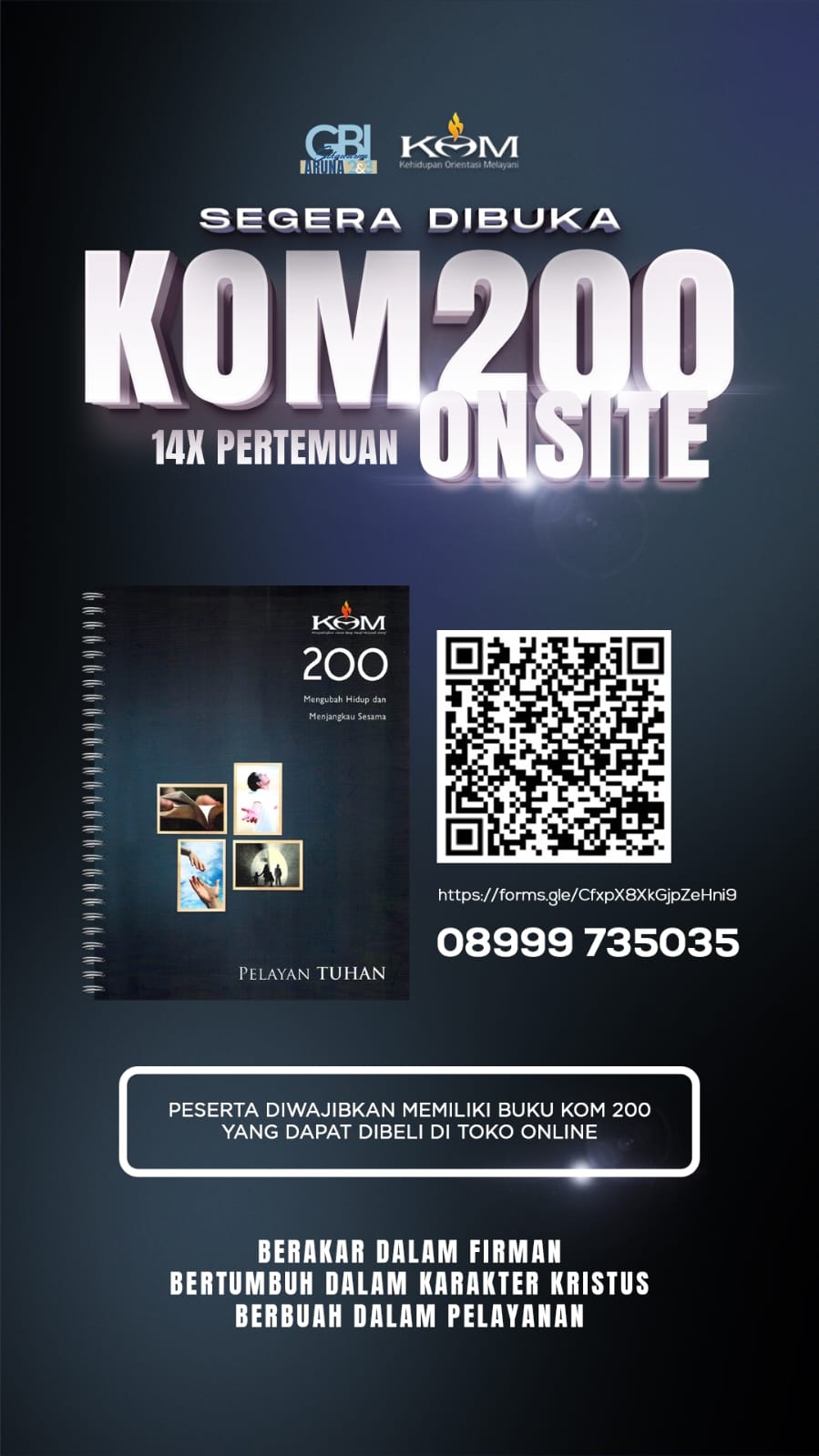 Sekalipun pada saat itu suami saya belum mau di baptis, namun dia sangat mendukung saya. Saya mengalami lahir baru dan memiliki hati yang haus dan lapar akan Firman Tuhan. Saya mengikuti talitakum tiap pagi, KOM 100, KOM 200 dan tergabung dalam COOL.