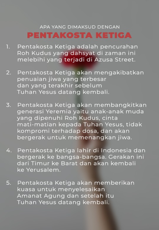 Saya tidak punya masa depan, lulus SMA saya tidak punya cita-cita. Bingung mau kemana? Cita-cita saya ingin jadi pilot, polisi, dokter semuanya terhalang dengan syarat fisik dan jurusan. Teman-teman di sekolah selesai SMA masing-masing sudah punya rencana akan kuliah kemana. Tetapi hidup yang sedang saya jalani adalah hidup yang rusak, ditolak sama papa, tidak punya cita-cita, tidak punya masa depan. Hidup saya hampa. Sampai pada akhirnya ada seorang teman di sekolah yang tahu jelas bagaimana keadaan saya. Dia mengajak saya pergi ke gereja, diajak ibadah Youth. Saya sendiri dari latar belakang yang berbeda.