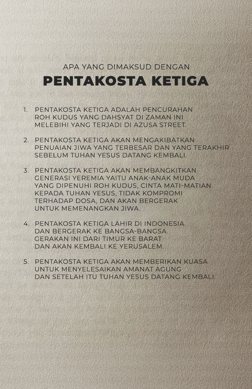 Sungguh dahsyat pekerjaan Tuhan. Sejak saat itu saya merasakan kehidupan saya sungguh berubah. Saya dapat lebih mencintai Tuhan Yesus. Saya merasakan Roh Kudus menguasai diri saya. Perlahan-lahan keinginan daging yang dulu selalu saya sukai kini mulai menghilang.